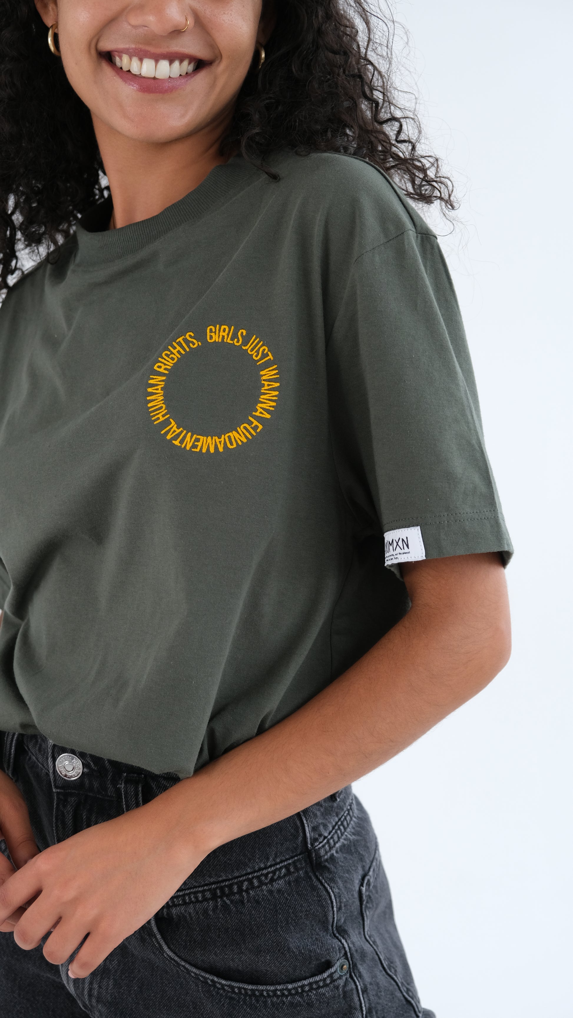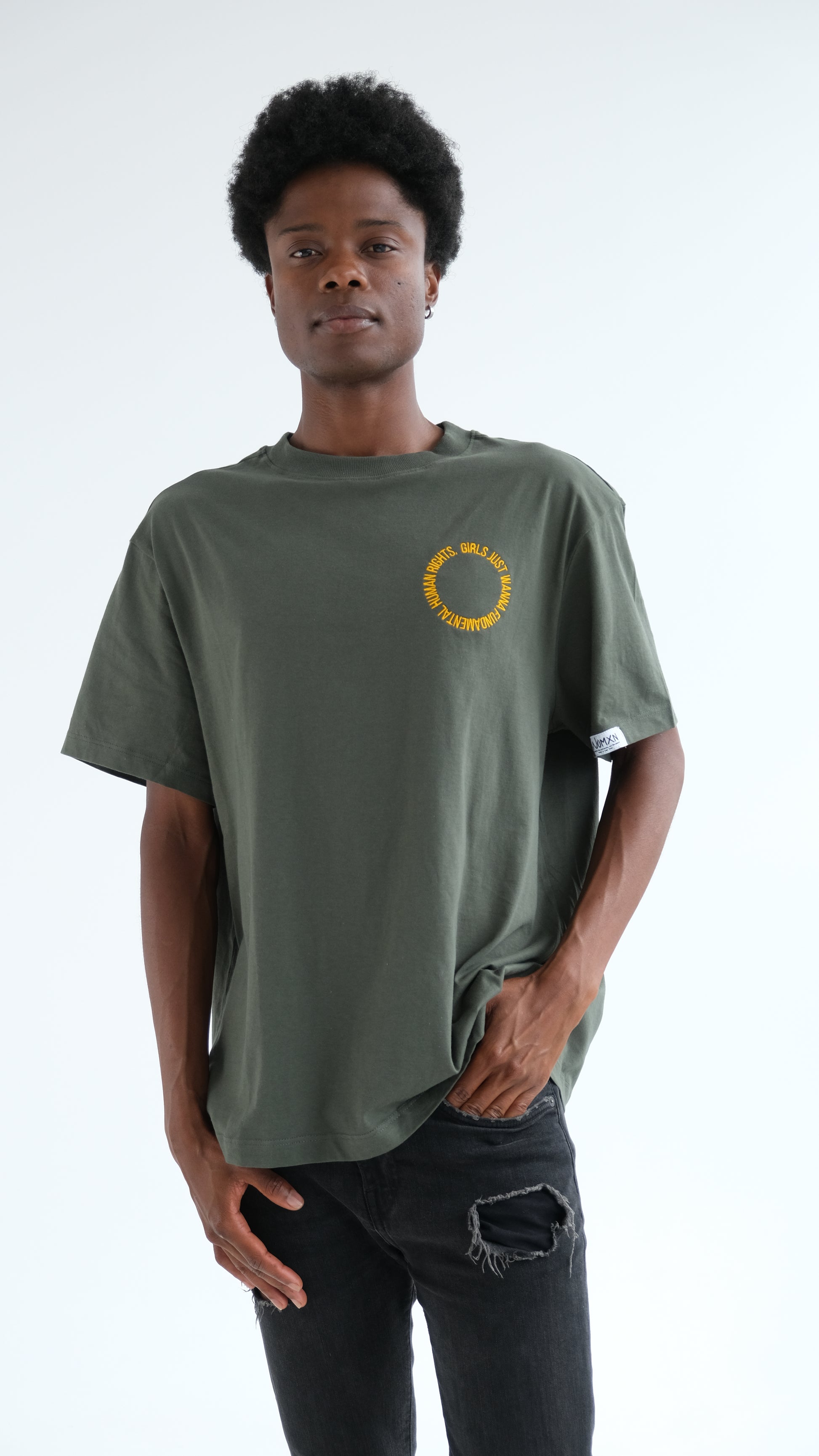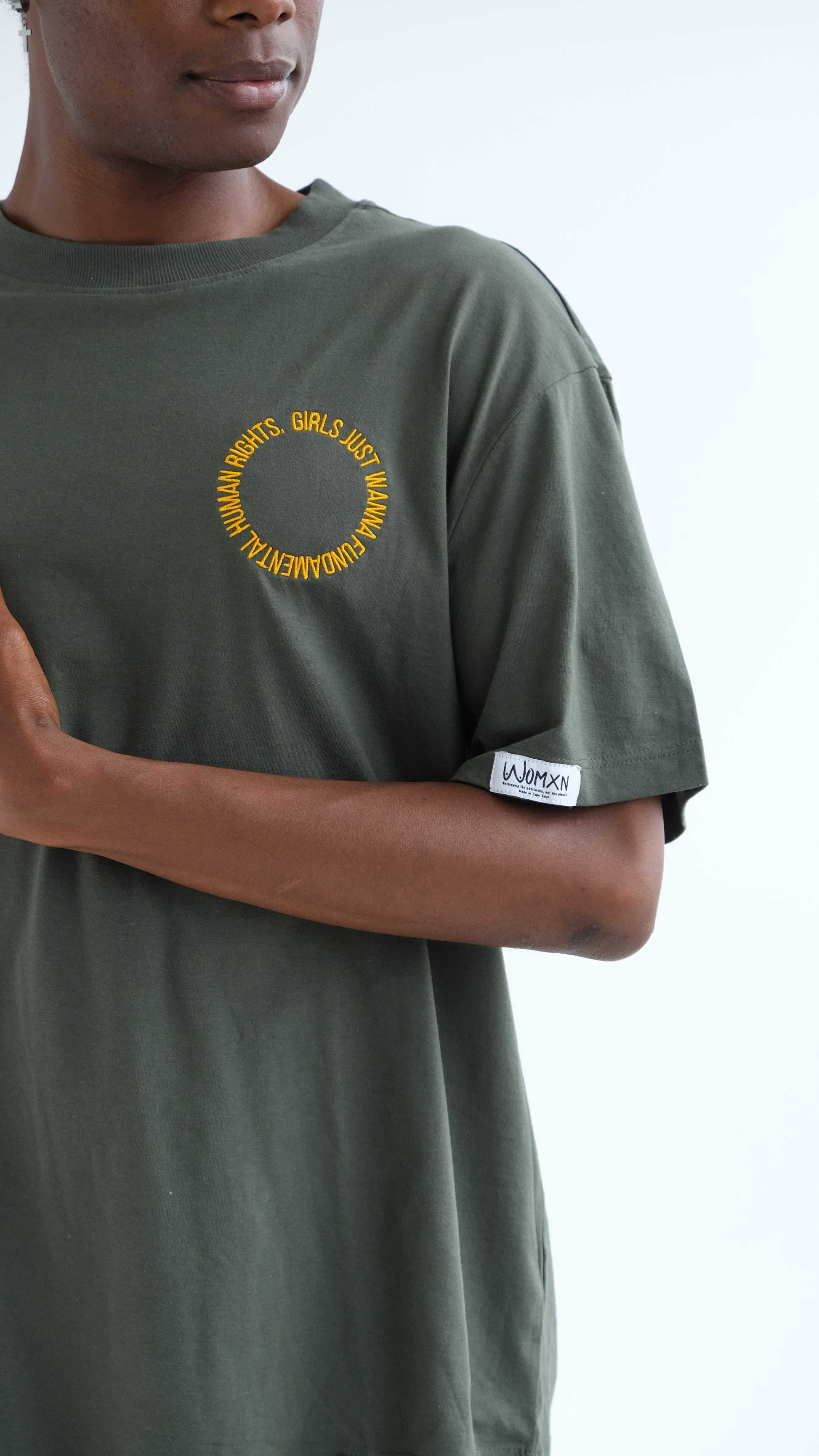 The circle represents our commitment to circular design, a concept where every aspect of the shirt, from the threads used to the choices made in its creation, and even down to the individual stitches, is geared towards promoting gender, eco-conscious fashion and creating a meaningful and lasting statement through fashion.