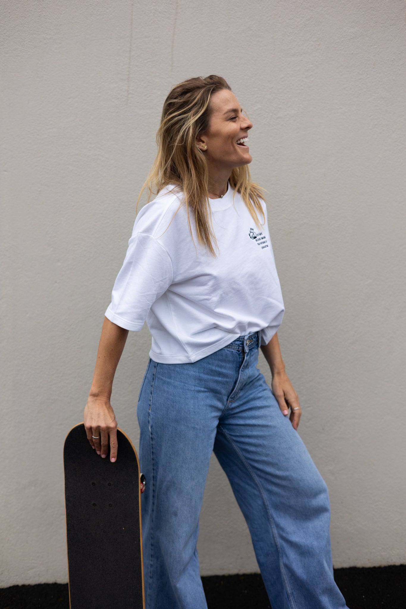 A slightly cropped boxy shirt made from a heavier, thicker organic cotton. Great with high-waisted pants.