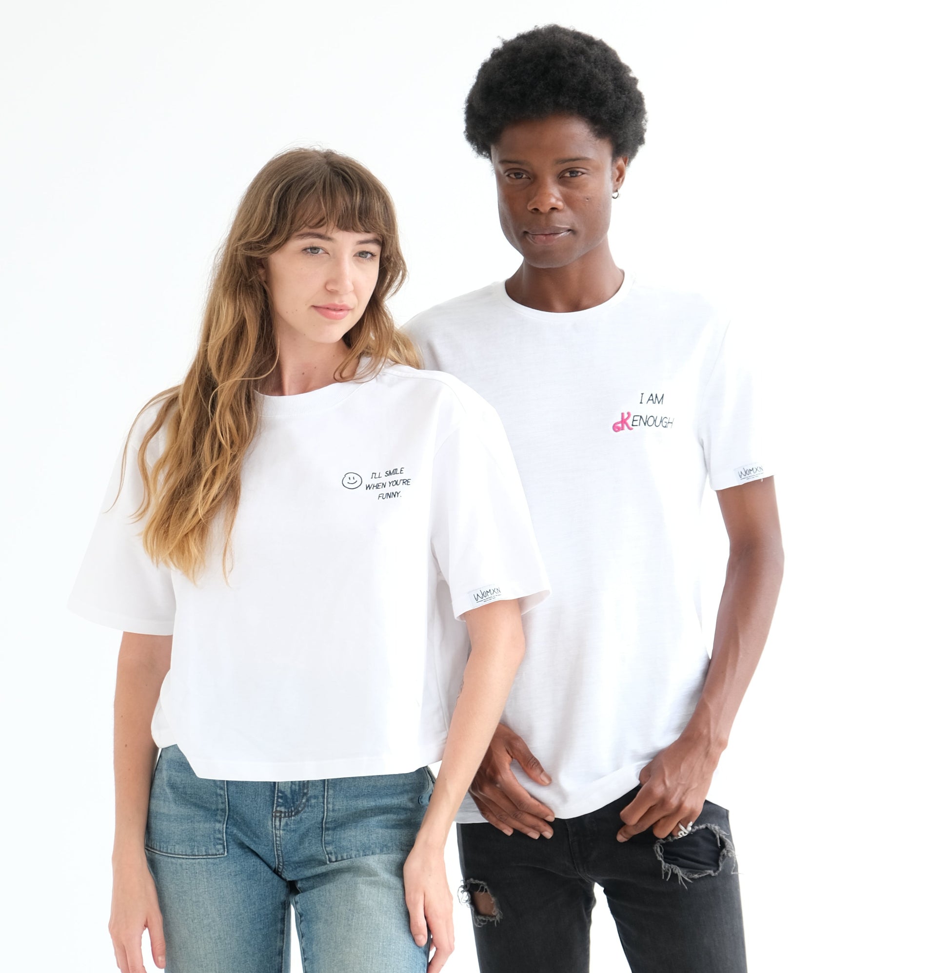 - A slightly cropped shirt made from a heavier, thicker cotton. Great with high-waisted pants.
