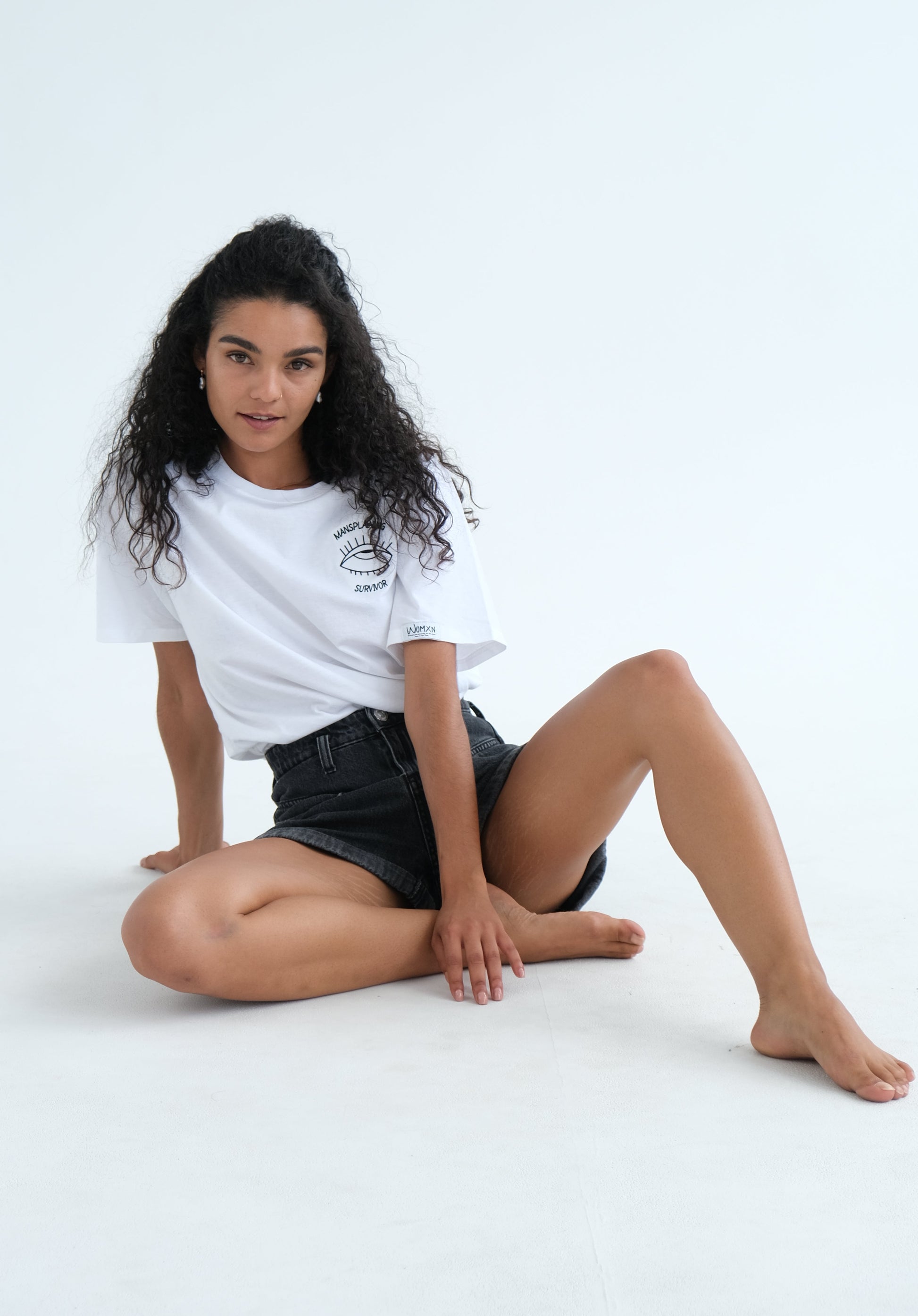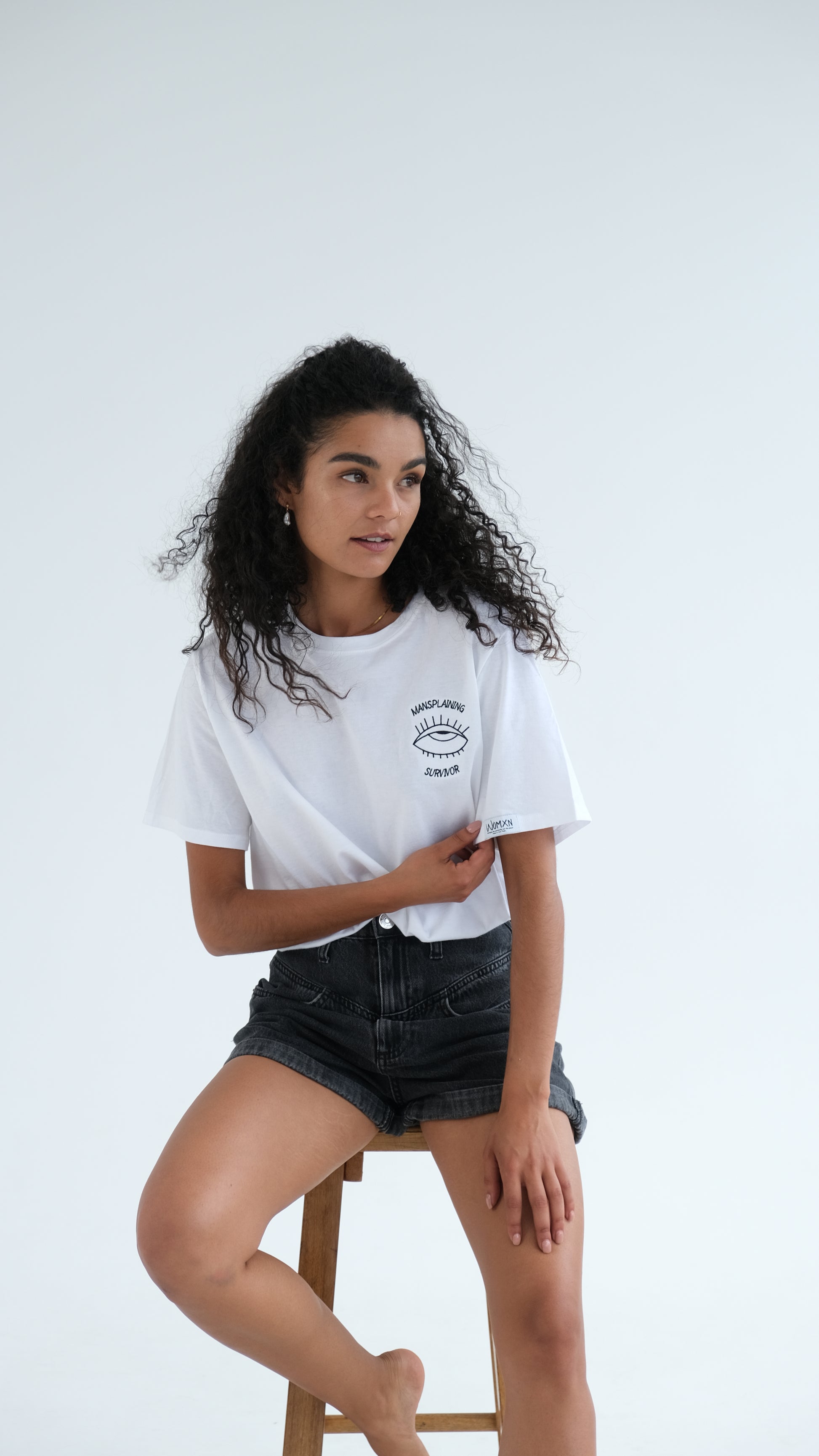 A slightly cropped t-shirt made from 100% cotton. Great with high-waisted pants.